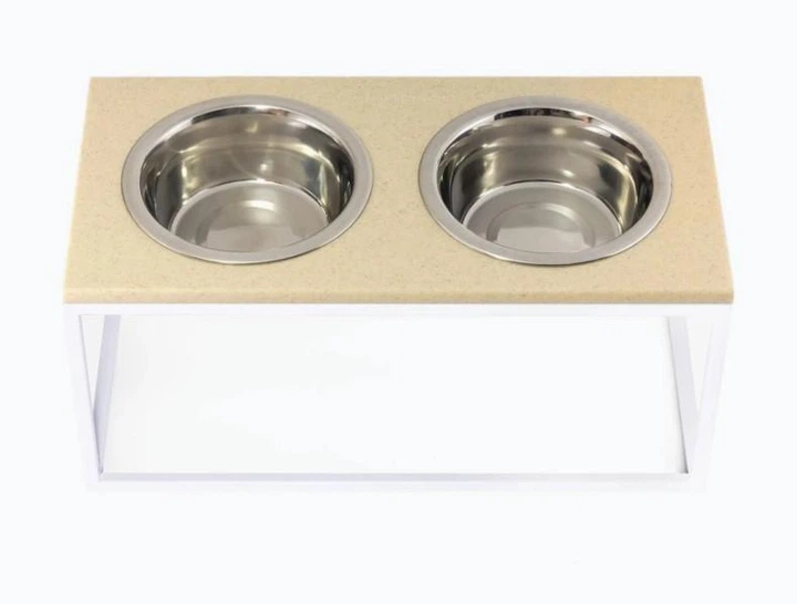 Миски на підставці Harley and Cho Lunch Bar Biege Stone + White M 42x21x10cm / Миски по 0,75л Бежевий камінь білий метал