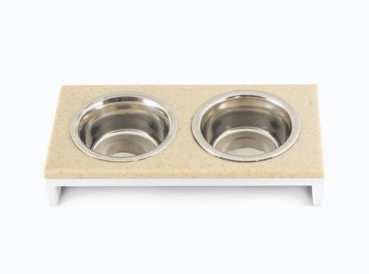 Миски на підставці Harley and Cho Lunch Bar Biege Stone + White XS 28x14x5cm / Миски по 0,2л Бежевий камінь білий метал