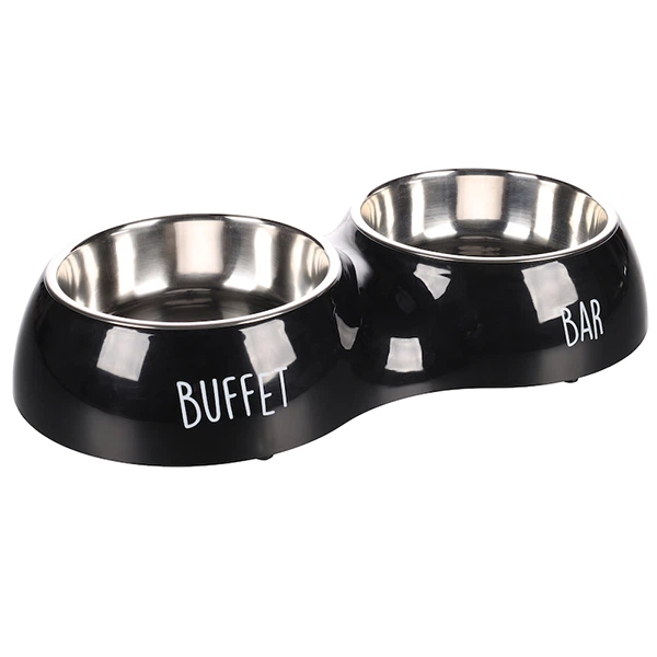 Подвійна миска Flamingo Divar Duo Dinner 2 х 900 мл на підставці для собак та котів, нержавіюча сталь, пластик