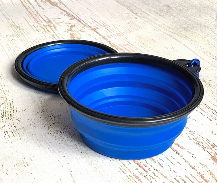 Складна силіконова миска тарілка для годування котів та собак Синій