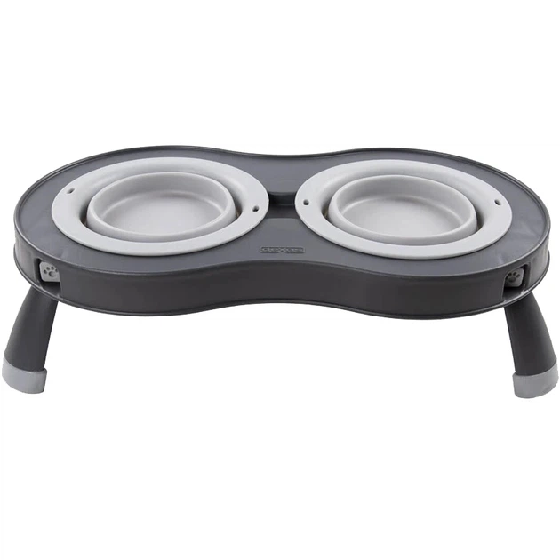 Подвійна миска DEXAS Double Elevated Feeder Small на складній підставці 240мл, для собак, світло-сіра