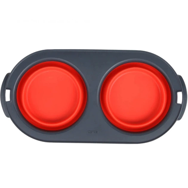 Подвійна миска DEXAS Collapsible/Expandable Pet Feeder 600мл, для собак, червона