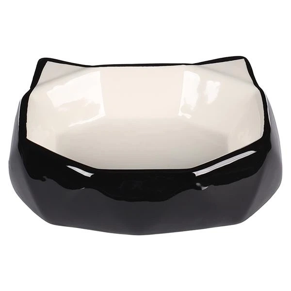 Керамічна миска Flamingo Cat Kubo для котів 180 мл чорно-біла, стильний дизайн, безпечна кераміка