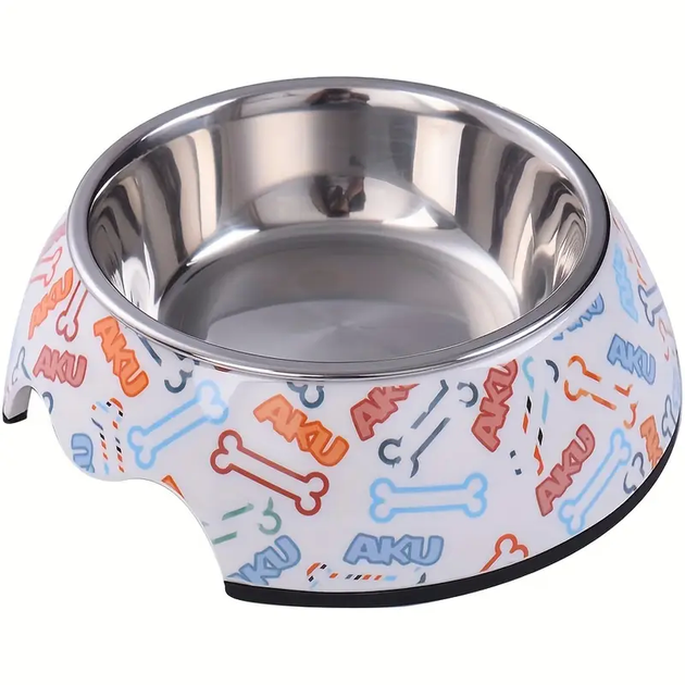 Меламінова миска для домашніх тварин з чашею з нержавіючої сталі Derby AH005 AKU Bone, 700 мл