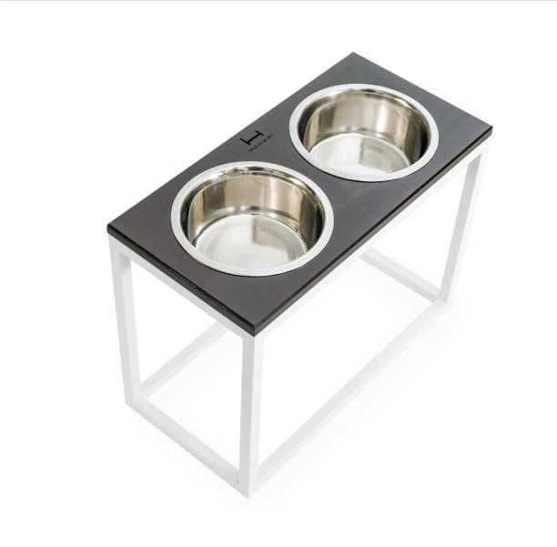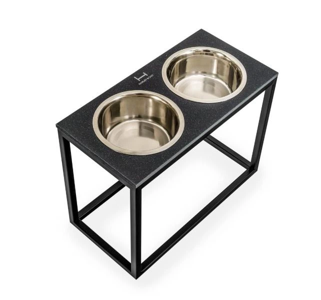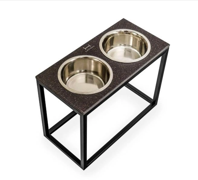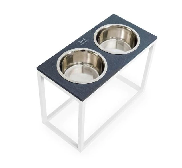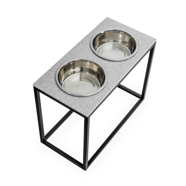 Миски на підставці Harley and Cho Dinner Black Stone + White XL40 52x26x40cm висота/ Миски 1,8л / Діаметр 20 см Чорний камін