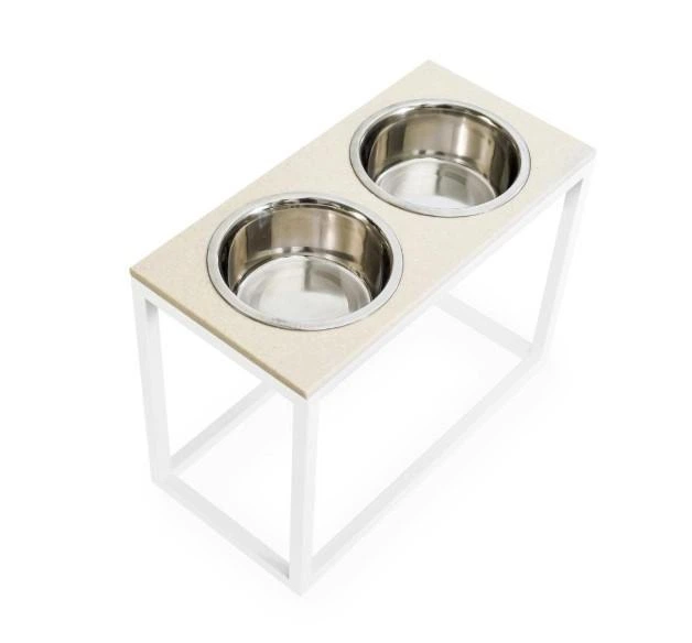 Миски на підставці Harley and Cho Dinner Biege Stone + White XL20 52x26x20cm висота/ Миски 1,8л / Діаметр 20 см Бежевий камі