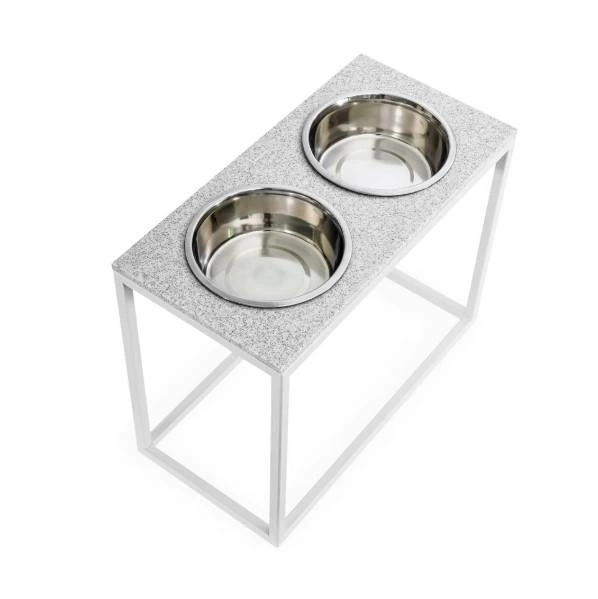 Миски на підставці Harley and Cho Dinner Grey Stone + White XL40 52x26x40cm висота/ Миски 1,8л / Діаметр 20 см Сірий камінь