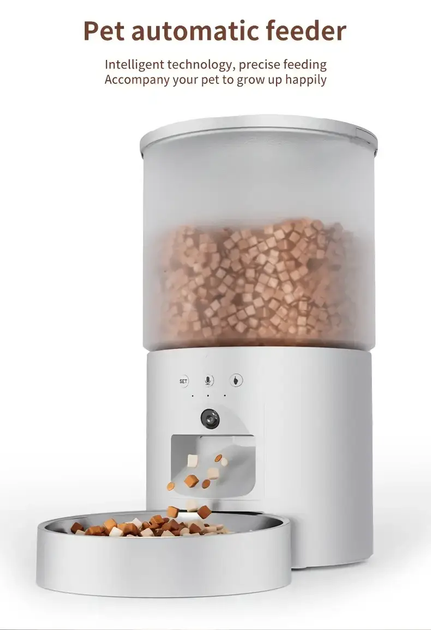 Розумна автоматична годівниця для котів і собак із WiFi-камерою (3 л, біла)