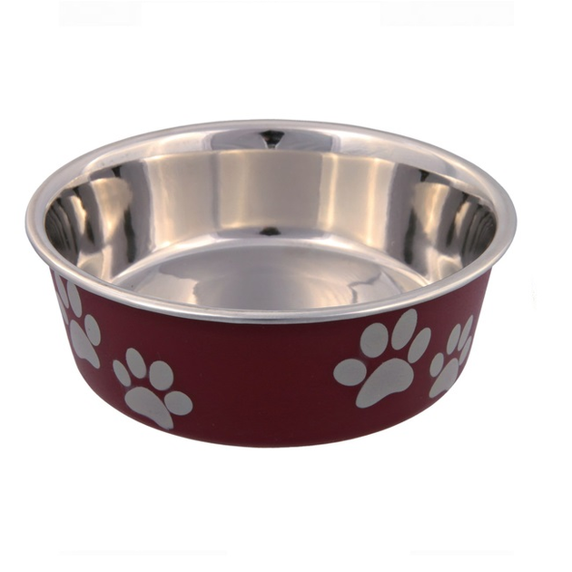 Миска для собак металева на гумі з пластиковим покриттям Trixie 0.3 л 12 см Бордовий (4011905252414)