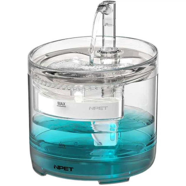 Питьевой фонтанчик поилка для кота и собак NPET WF050 1.5 л с LED подсветкой, краном и 2 фильтрами, прозрачный