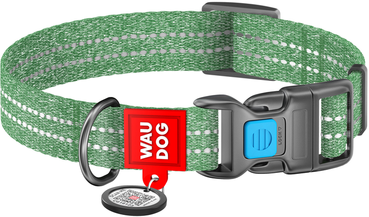 Нашийник для собак із відновленої бавовни WAUDOG Re-cotton з QR паспортом світловідбиваючий пластиковий фастекс Ш 25 мм Дов