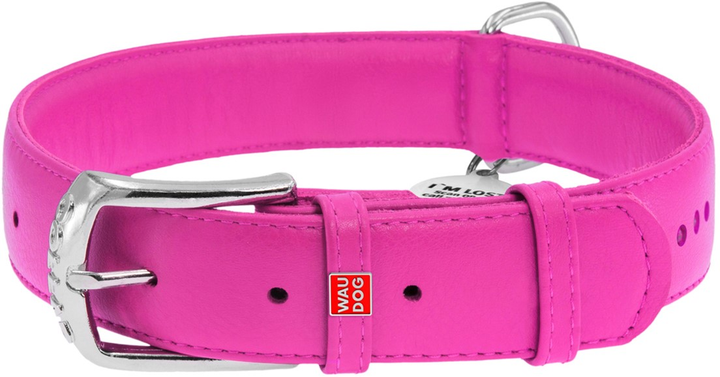 Нашийник для собак шкіряний WAUDOG Glamour з QR паспортом подвійний зі стразами M Ш 20 мм Дов 30-39 см Рожевий (482308931836