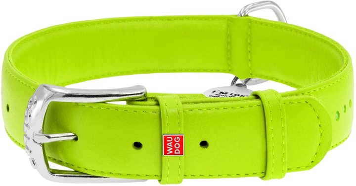 Нашийник для собак шкіряний WAUDOG Glamour з QR паспортом подвійний зі стразами M Ш 20 мм Дов 30-39 см Салатовий (4823089318