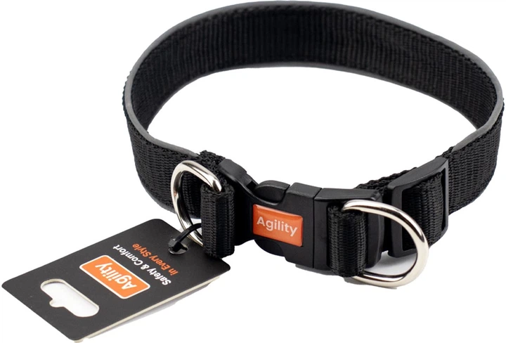 Нашийник Agility нейлон зі світловідбивним кантом і пластиковою пряжкою подвійний 25 мм, 430-470 мм Чорний (4823101316896)