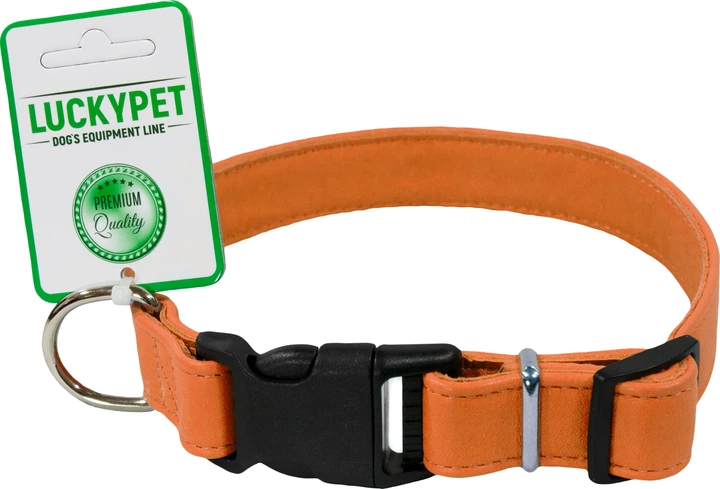 Нашийник шкіряний Lucky Pet подвійний пластикова фурнітура 1.6/25-35 Помаранчевий (4820224217901)