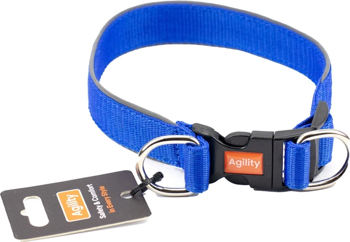 Нашийник Agility нейлон зі світловідбивним кантом і пластиковою пряжкою подвійний 25 мм, 430-470 мм Синій (4823101316902)