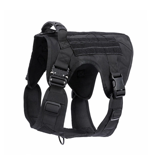 Тактичний жилет-шлейка з ручкою та системою molle для собак чорна M