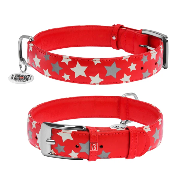 Ошейник для собак шкіряний WAUDOG Glamour з QR паспортом, візерунок "Зірочка", світлонакопичувальний/світловідбивний, XL, Ш