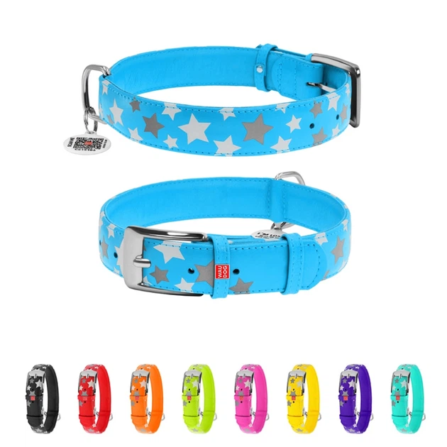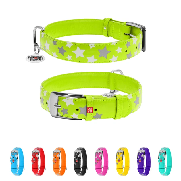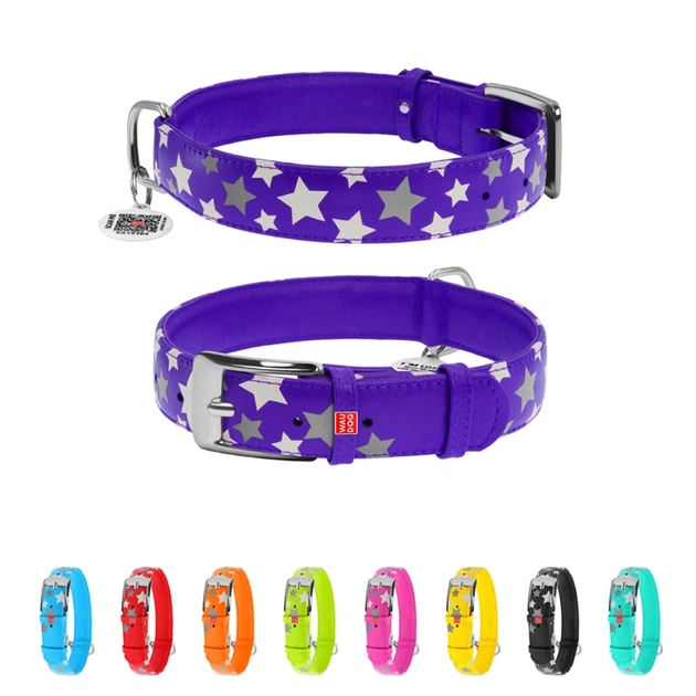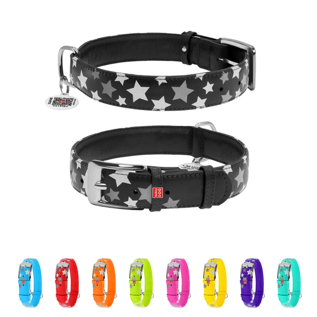 Нашийник для собак шкіряний WAUDOG Glamour з QR паспортом, візерунок "Зірочка", світлонакопичувальний/світловідбивний, XL, Ш