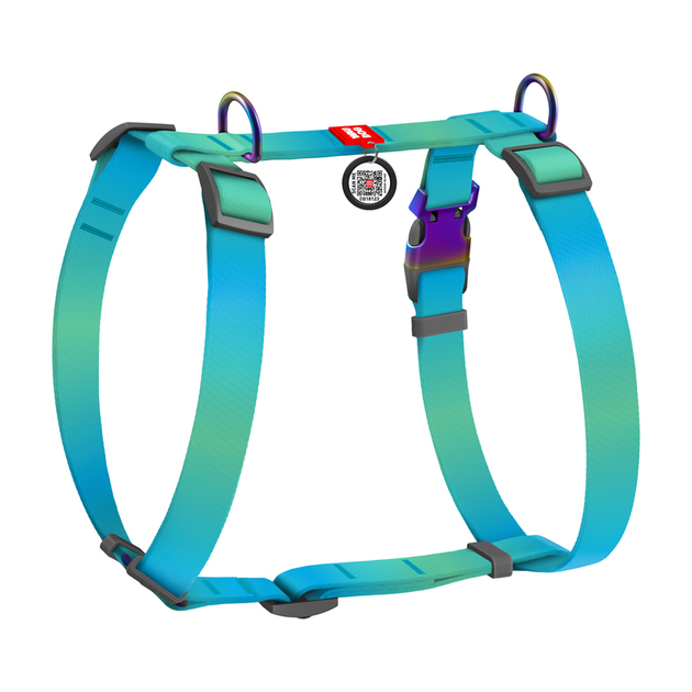 Шлей для собак анатомічний H-подібний WAUDOG Nylon Recycled з QR-паспортом градієнт L Ш 25 мм А 50-90 В 60-100 блакитний
