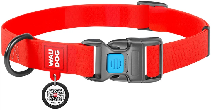 Нашийник для собак водостійкий WAUDOG Waterproof c QR паспортом пластикова пряжка-фастекс Ш 25 мм Дов 38-58 см Червоний (277