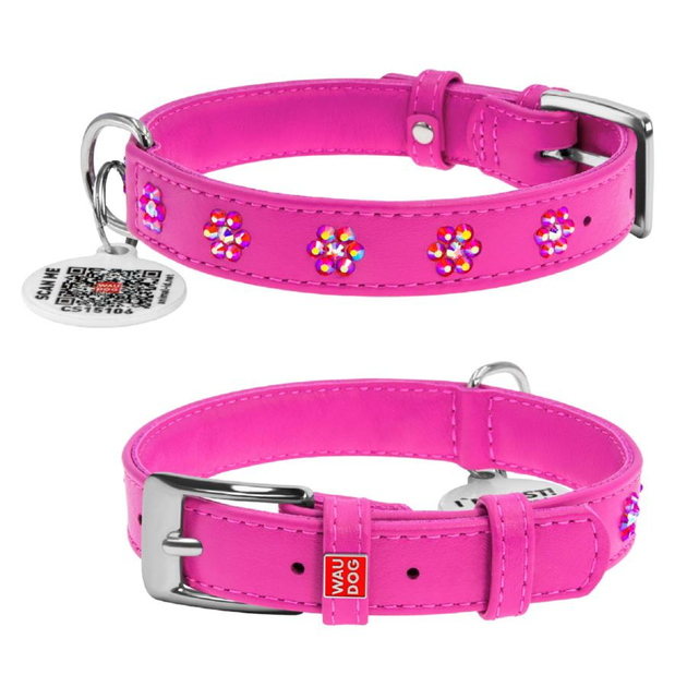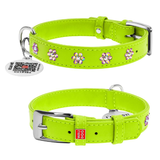 Нашийник для собак шкіряний WAUDOG Glamour з QR паспортом, з клейовими стразами "Квіточка", XS, Ш 15 мм, Дл 27-36 см (482008