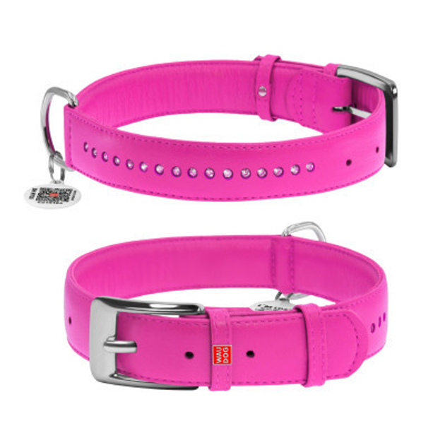 Нашийник для тварин WAUDOG Glamour з QR-паспортом, подвійний Ш 20 мм Д 30-39 см рожевий (38767)