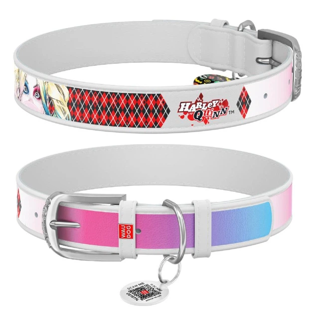 Нашийник для собак шкіряний WAUDOG Design з QR паспортом, малюнок "Харлі Квін", XL, Ш 35 мм, Дл 44-58 см