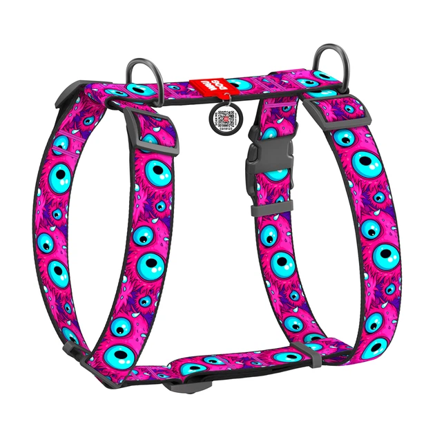 Шлей для собак анатомічний H-подібний WAUDOG Nylon з QR-паспортом малюнок "Око монстра" пластиковий фастекс XL Ш 35 мм А 55-
