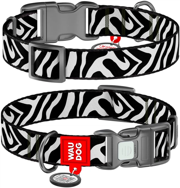 Нашийник для собак нейлоновий WAUDOG Nylon з QR адресником малюнок Зебра L Ш 25 мм Дов 33-49 см (282-0055collar)