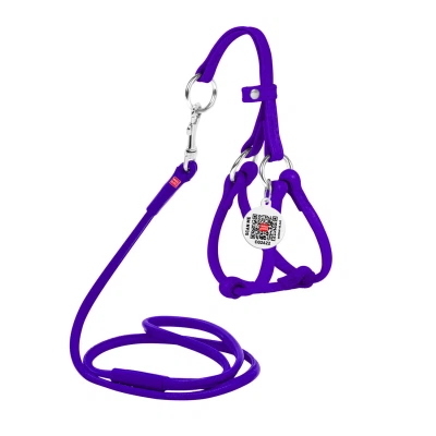 Шлея для собак WAUDOG Glamour з повідцем кругла Д 6 мм А 42-60 см В 46-64 см фіолетова (34029)