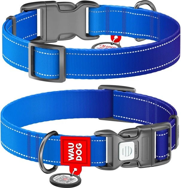 Нашийник для собак нейлоновий WAUDOG Nylon Mono c QR паспортом світловідбивний пластиковий фастекс L Ш 25 мм Дл 33-49 см Син