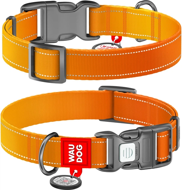 Нашийник для собак нейлоновий WAUDOG Nylon Mono з QR паспортом світловідбивний пластиковий фастекс L Ш 25 мм Дов 33-49 см Ор