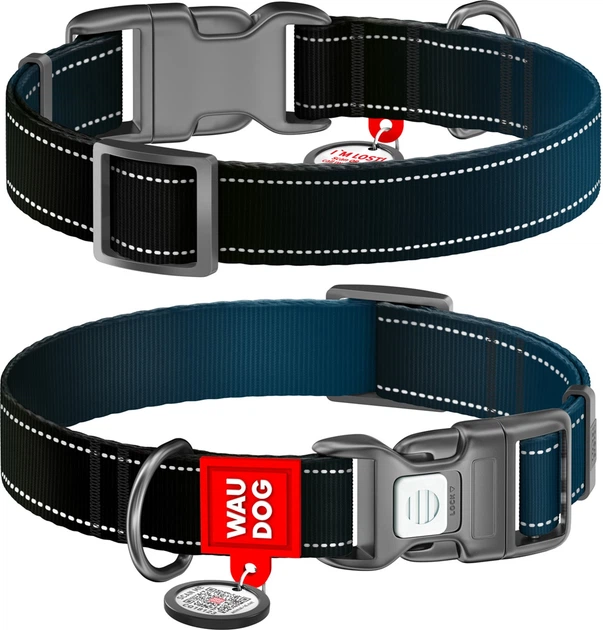 Нашийник для собак нейлоновий WAUDOG Nylon Mono із QR-паспортом, світловідбивний, пластиковий фастекс, L, ширина 25 мм, довж