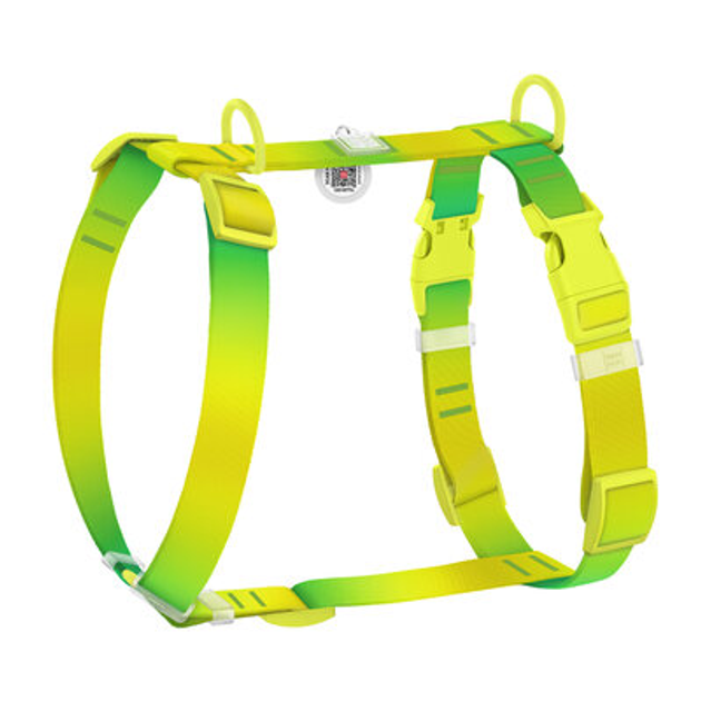 Шлея для собак анатомічна H-подібна WAUDOG Nylon Recycled з QR-паспортом, градієнт, пластиковий фастекс, L, Ш 25 мм, А 51-85
