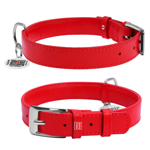 Шкіряний нашийник для собак WAUDOG Glamour з QR паспортом без прикрас L Ш 25 мм 38-49 см Red (33043)