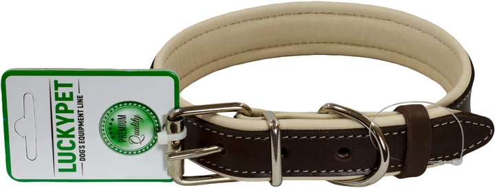 Нашийник шкіряний подвійний Lucky pet 2.5/36-46 Коричнево-бежевий (4820224216829)