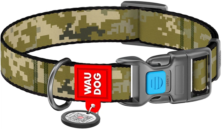 Нашийник для собак нейлоновий WAUDOG Nylon з QR-паспортом малюнок "Мілітарі" пластиковий фастекс XL Ш 25 мм Дов 37-58 см (28
