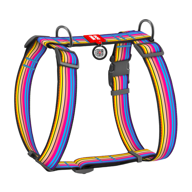 Шлей для собак анатомічний H-подібний WAUDOG Nylon з QR паспортом, малюнок "Лінія 1", пластиковий фастекс, розмір XL (323-00