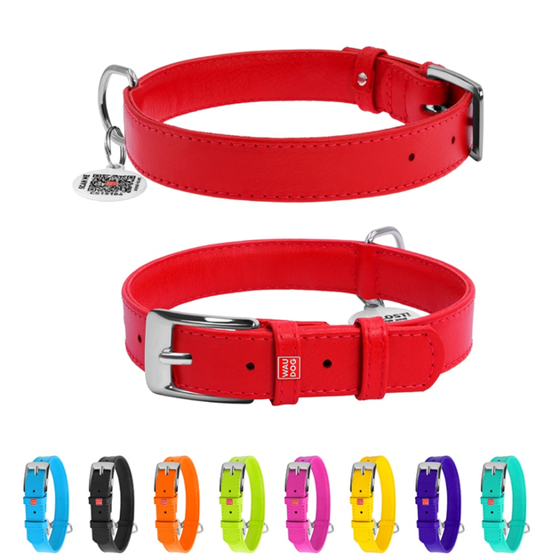 Нашийник для собак шкіряний WAUDOG Glamour з QR паспортом, без прикрас, Ш 25 мм, Дл 38-49 см, червоний
