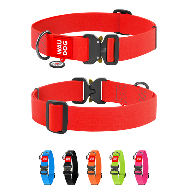 Нашийник для собак водостійкий WAUDOG Waterproof з QR-паспортом, металева пряжка-фастекс, Ш 40 мм, Д 46-70 см, червоний