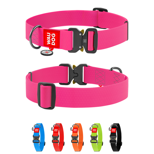 Нашийник для собак водостійкий WAUDOG Waterproof з QR-паспортом, металева пряжка-фастекс, Ш 40 мм, Д 46-70 см, рожевий