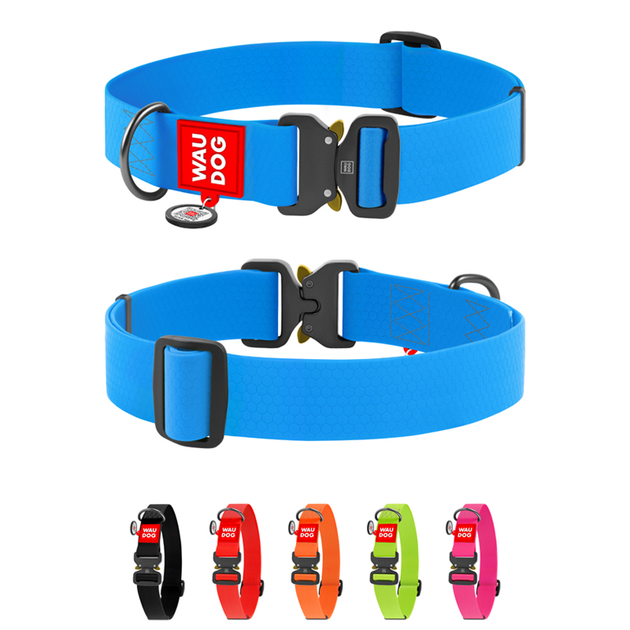 Нашийник для собак водостійкий WAUDOG Waterproof з QR-паспортом, металева пряжка-фастекс, Ш 40 мм, Д 46-70 см, блакитний
