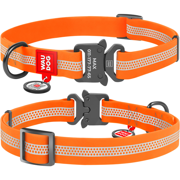 Нашийник для собак водостійкий WAUDOG Waterproof з QR паспортом, світловідбивний, металева пряжка-фастекс, розмір XXL, 46-70