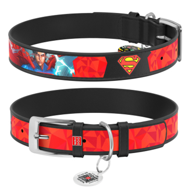 Нашийник для тварин WAUDOG Design з QR паспортом "Супермен 1" Ш 25 мм Д 38-49 см чорний (0025-1007-01)