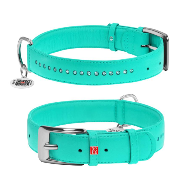 Нашийник для собак шкіряний WAUDOG Glamour з QR паспортом, подвійний зі стразами, Ш 25 мм, Дов 38-49 см салатовий