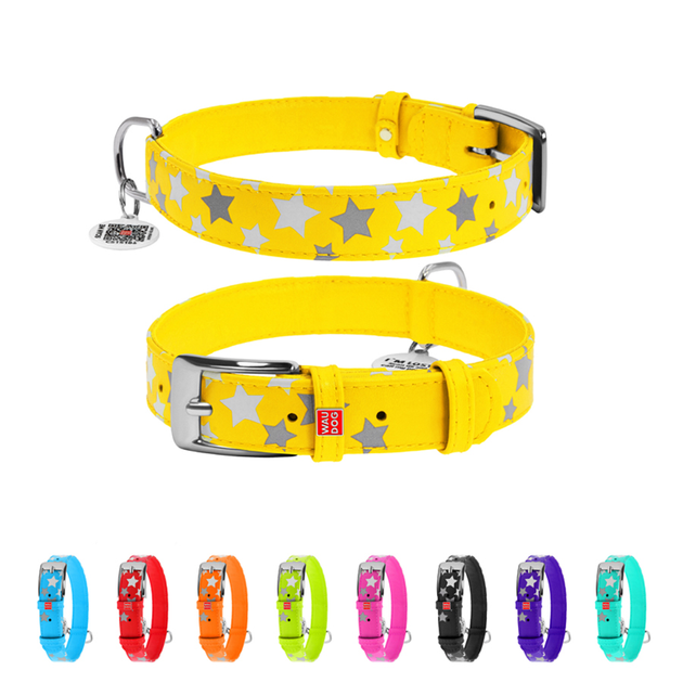 Нашийник для собак WAUDOG шкіряний Glamour з QR паспортом, візерунок Зірочка, що світиться/світловідбиваючий, Ш 25 мм, Д 38-