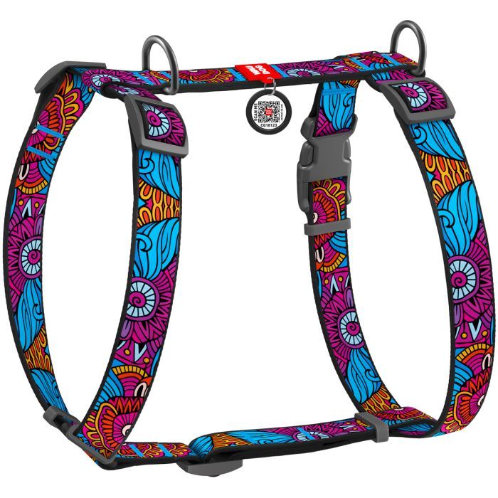 Шлея для собак WAUDOG Nylon з QR паспортом анатомічна H-подібна "Інді" S (5595) 5595