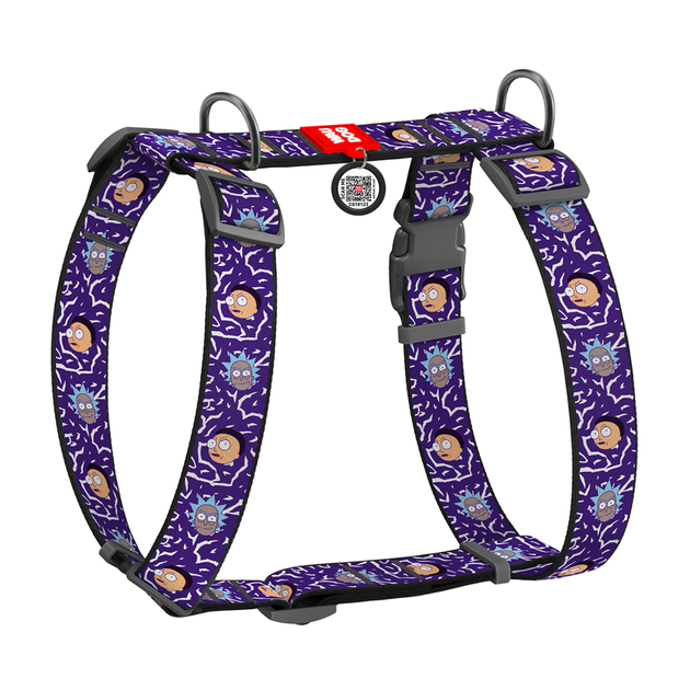 Шлей для собак анатомічний H-подібний WAUDOG Nylon з QR паспортом, малюнок "Рік і Морті 2", пластиковий фастекс, розмір XL (