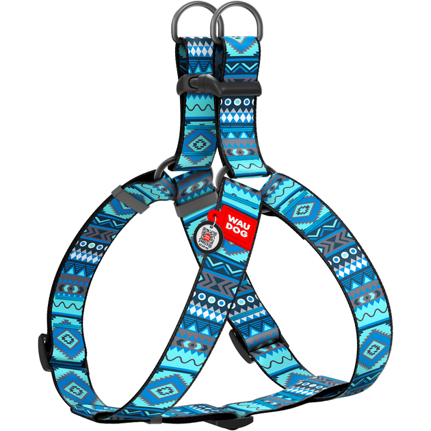 Шлей для собак WAUDOG Nylon з QR паспортом, малюнок "Етно синій", пластиковий фастекс, розмір XL (324-0131)